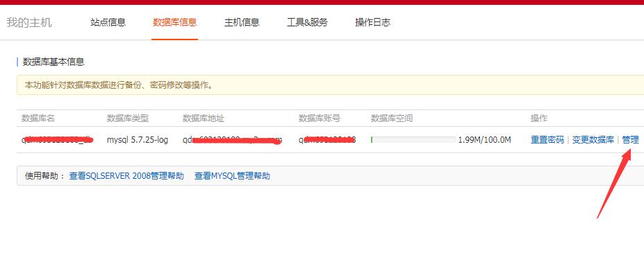 一、通過主機控制面板進入數據庫控制面板如圖: