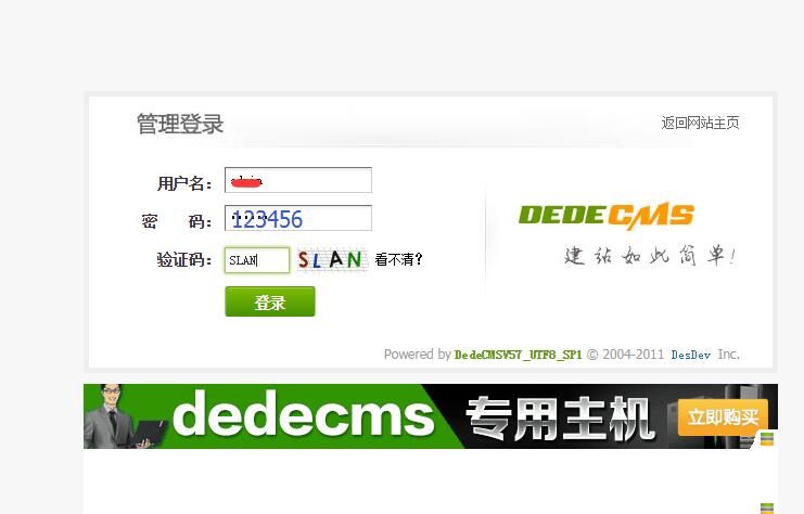 三、再進入織夢后臺輸入密碼:123456,就可以進入