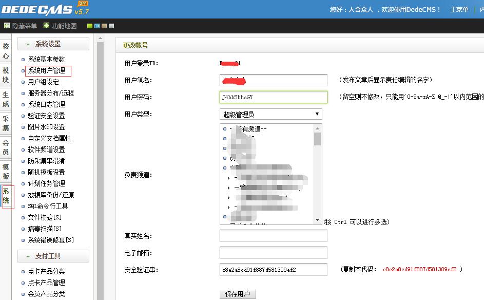 四、進入后臺后,一定要重置新的密碼,系統--系統用戶管理--用戶密碼換成復雜些的,并牢記下來,以后用你自己的密碼登陸即可