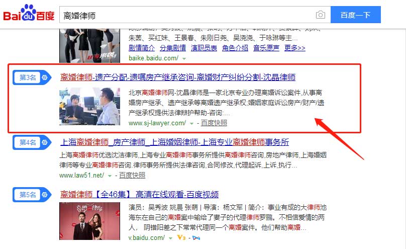 北京沈晶律師網(wǎng)核心業(yè)務(wù)“離婚律師”終于有了排名!北京沈晶律師是一家北京專業(yè)辦理離婚訴訟案件,離婚房產(chǎn)繼承、遺產(chǎn)繼承等離婚遺產(chǎn)繼承權(quán)業(yè)務(wù)的網(wǎng)站,網(wǎng)站關(guān)鍵詞“離婚律師”于2019年5年由環(huán)宇網(wǎng)絡(luò)接手網(wǎng)站優(yōu)化服務(wù),在此之前網(wǎng)站關(guān)鍵詞“離婚律師”無排名...