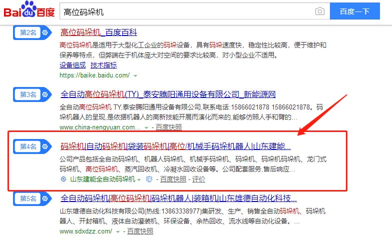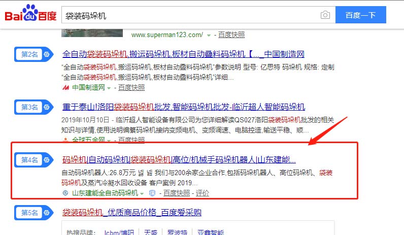 山東建能碼垛機(jī)官網(wǎng)委托環(huán)宇網(wǎng)絡(luò)優(yōu)化網(wǎng)站,關(guān)鍵詞:自動(dòng)碼垛機(jī),高位碼垛機(jī),袋裝碼垛機(jī)等詞,經(jīng)過(guò)SEO技術(shù)專員努力,碼垛機(jī)相關(guān)的關(guān)鍵詞已經(jīng)80%達(dá)標(biāo)。...